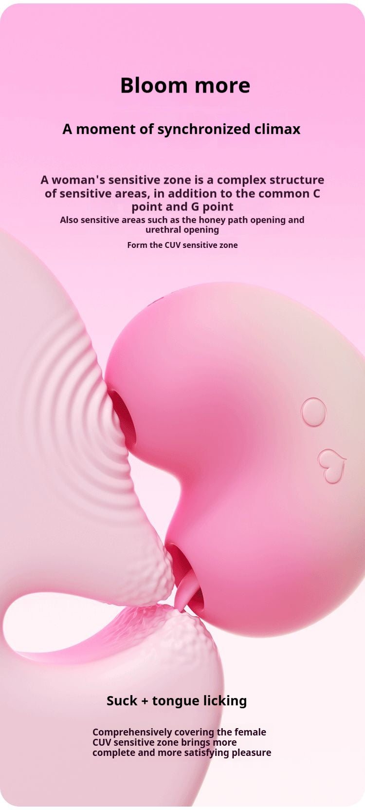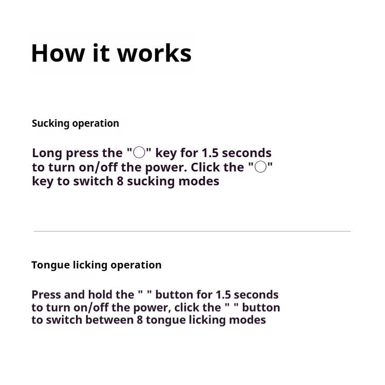 【 Product Features 】-8 Sucking modes, 8 tongue licking modes. The two thrilling stimuli of sucking and tongue touch simultaneously serve to stir your passion and take you soaring to the clouds. Single-point play can stimulate point C by using the sucking mouth or tongue licking mouth. The sucking and licking dual-play rule can use the sucking mouth and the tongue licking mouth to cover the entire CUV area from point C to the honey passage opening to stimulate the entire CUV area.